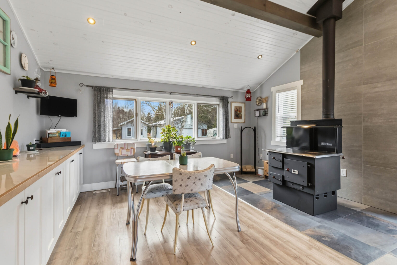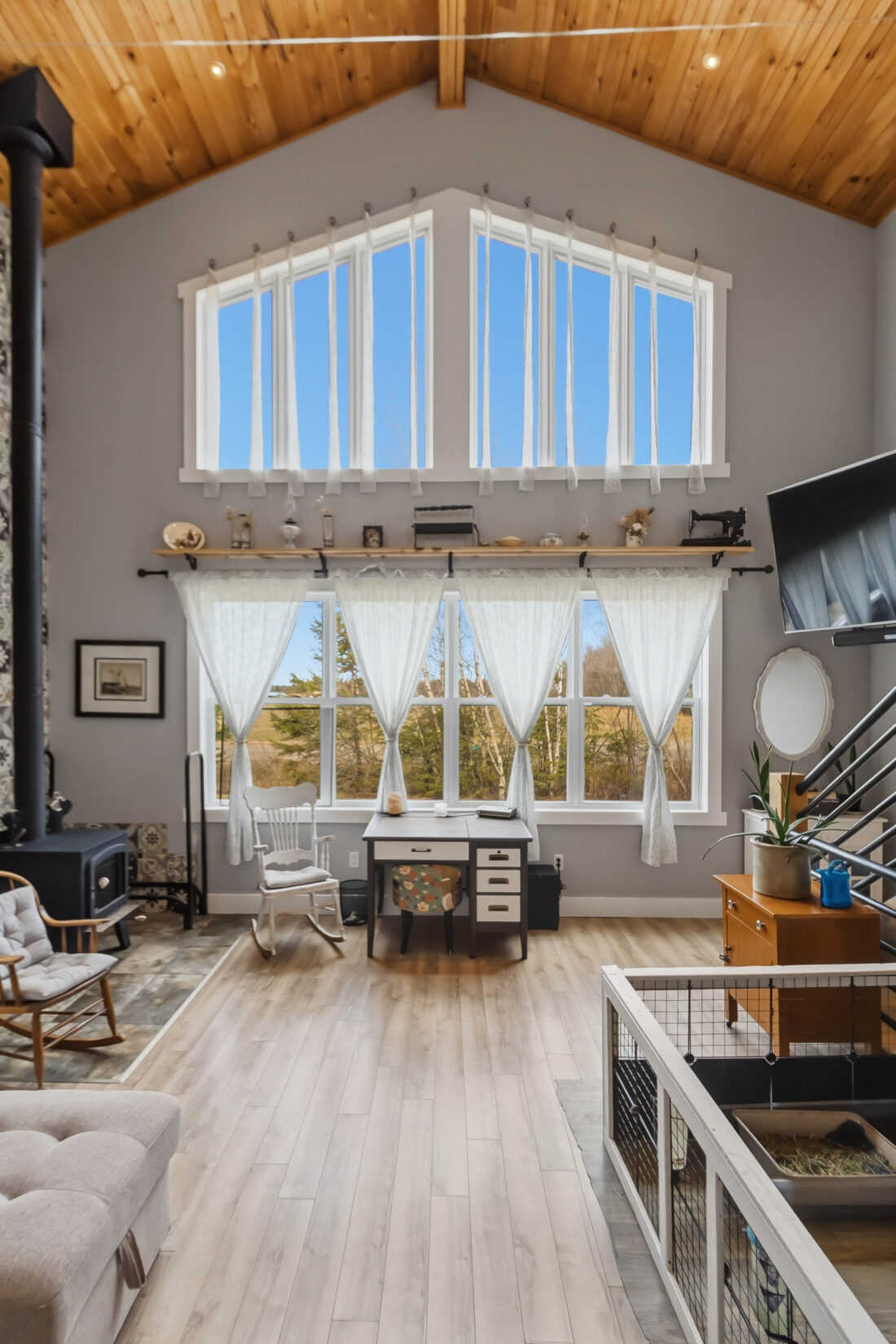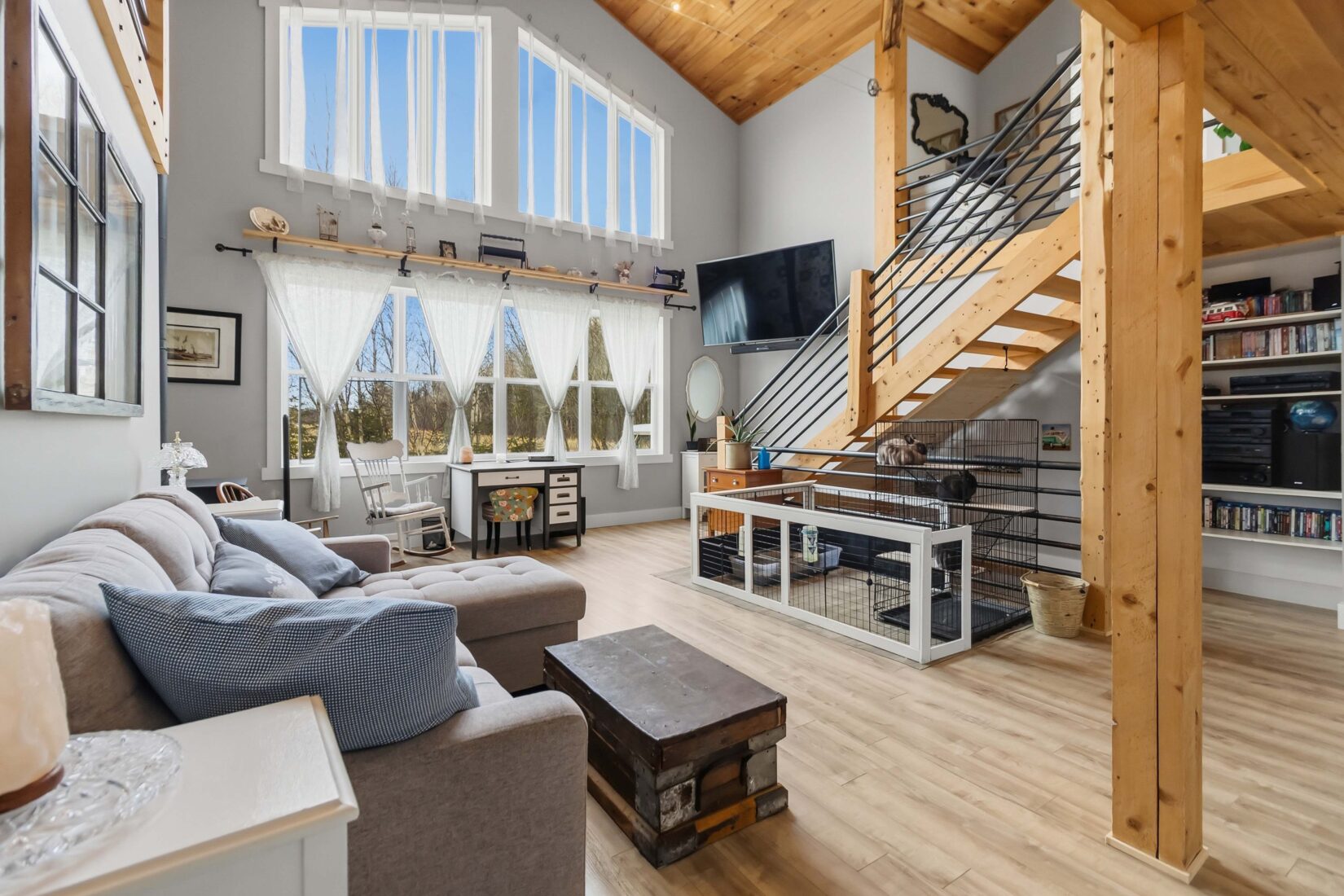 | Enjoy beautiful country living outside the city on this charming 2-acre property. This unique home features warm wood siding, a durable metal roof, and a welcoming open-concept layout highlighted by a custom wood ceiling, vaulted ceilings, and stunning floor-to-ceiling windows that fill the space with natural light. Designed for comfort and character, the home offers three bedrooms and three bathrooms, along with a traditional cook stove that doubles as a wood heat source, complemented by an electric forced air furnace for year-round efficiency. Step outside to take in the peaceful surroundings, complete with a fire pit area, a 10 x 10 chicken coop, 40 x 80 fenced vegetable garden, and plenty of space to enjoy outdoor living. A detached 18 x 24 garage provides additional storage or workshop space. A perfect blend of rustic charm and modern convenience, this property offers privacy, space, and a true country lifestyle while remaining close to city amenities. Contact your REALTOR® today to schedule your private viewing. | ||||
