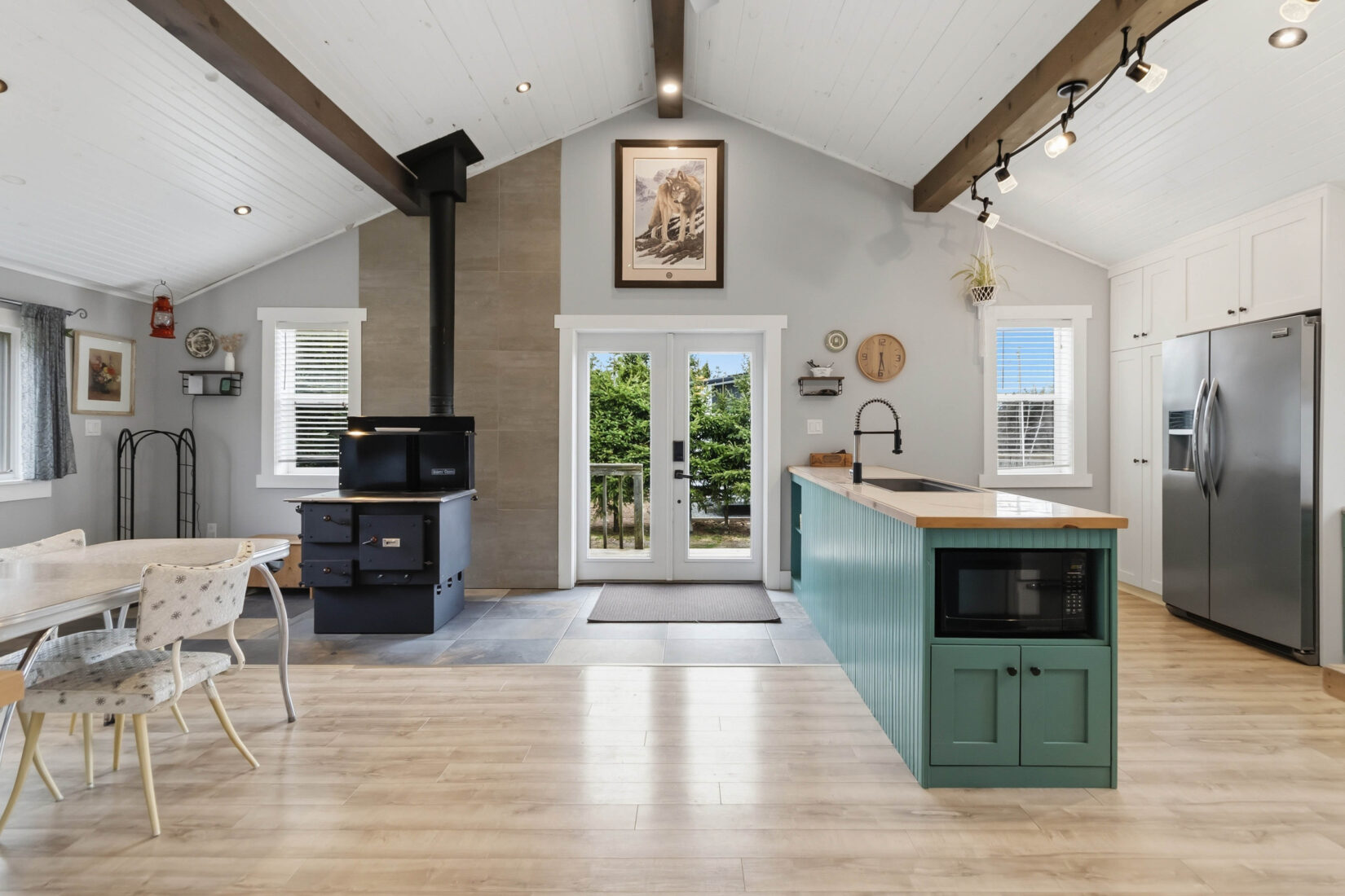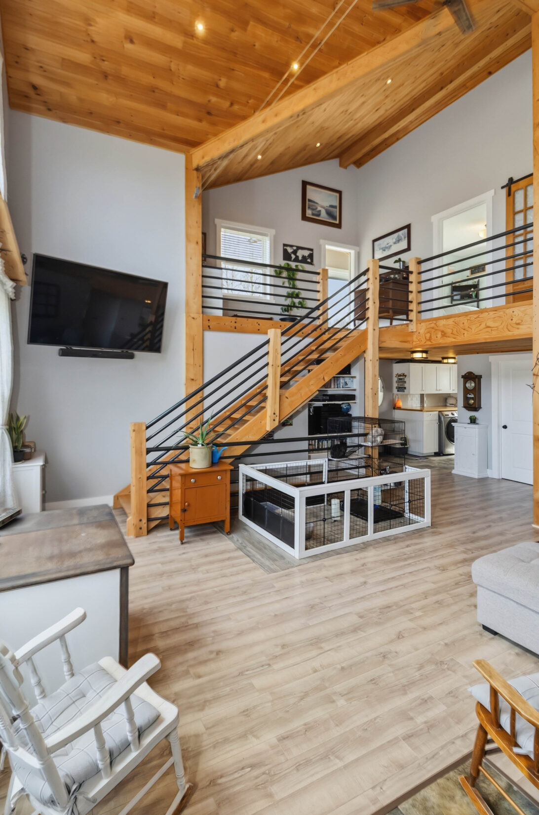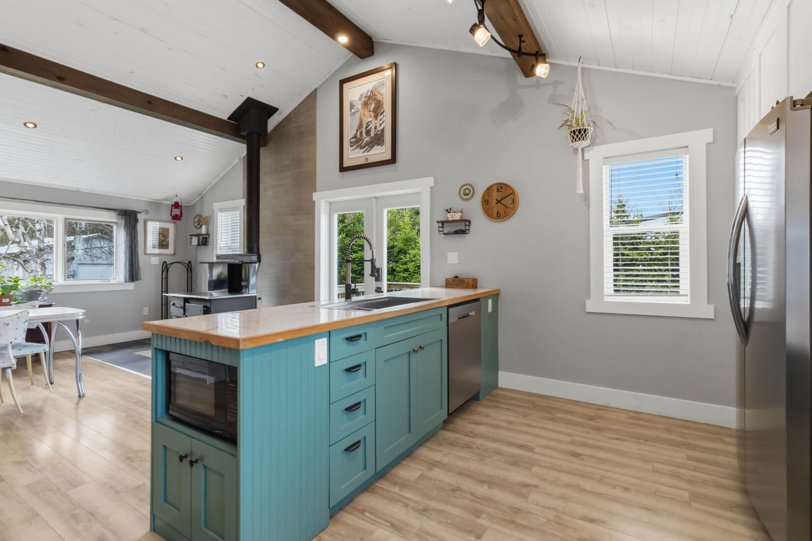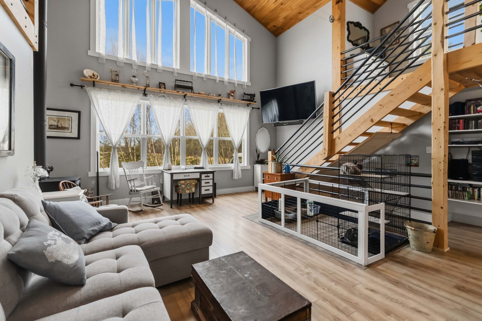 | Enjoy beautiful country living outside the city on this charming 2-acre property. This unique home features warm wood siding, a durable metal roof, and a welcoming open-concept layout highlighted by a custom wood ceiling, vaulted ceilings, and stunning floor-to-ceiling windows that fill the space with natural light. Designed for comfort and character, the home offers three bedrooms and three bathrooms, along with a traditional cook stove that doubles as a wood heat source, complemented by an electric forced air furnace for year-round efficiency. Step outside to take in the peaceful surroundings, complete with a fire pit area, a 10 x 10 chicken coop, 40 x 80 fenced vegetable garden, and plenty of space to enjoy outdoor living. A detached 18 x 24 garage provides additional storage or workshop space. A perfect blend of rustic charm and modern convenience, this property offers privacy, space, and a true country lifestyle while remaining close to city amenities. Contact your REALTOR® today to schedule your private viewing. | ||||